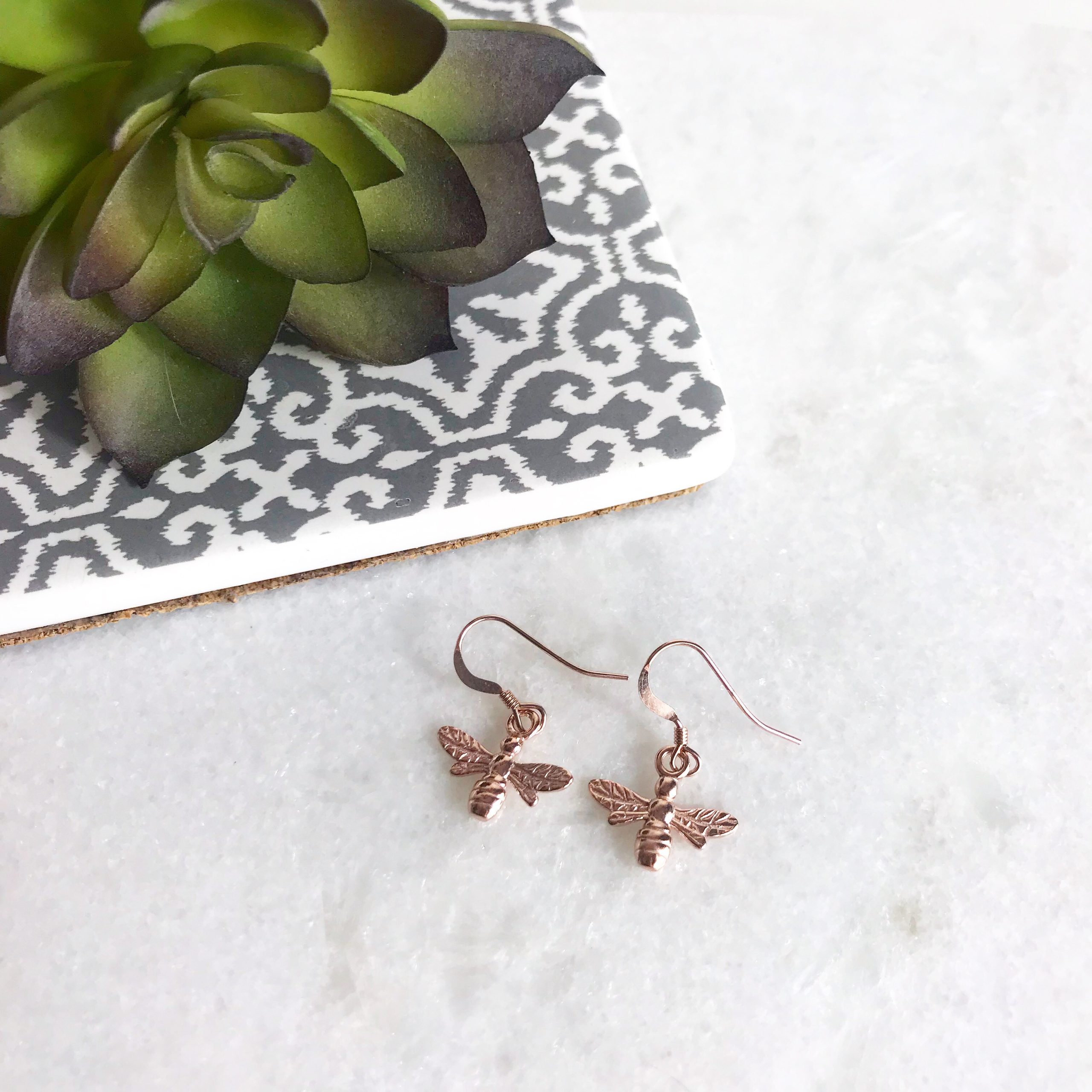 Our beautiful and dainty 18k rose gold plated, sterling silver bee drop earrings are a true classic and will be a firm favourite with everyone. Intricate detailing brings these little bees to life making them a stunning gift for so many occasions. A perfect everyday piece that will forever be a treasure in your jewellery collection and one we are sure will receive plenty of compliments.