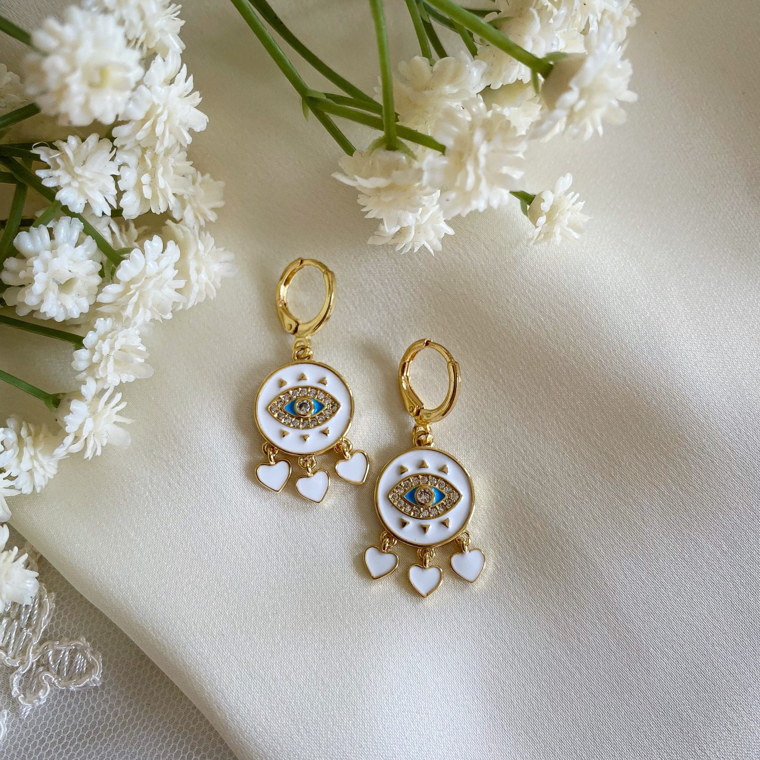 Across many cultures, the eye-shaped talisman is cherished as a symbol of safety, strength and spiritual balance. These earrings not only embody that protective energy but also add a touch of elegance to any outfit. The perfect accessory for everyday wear or a meaningful gift for someone special.