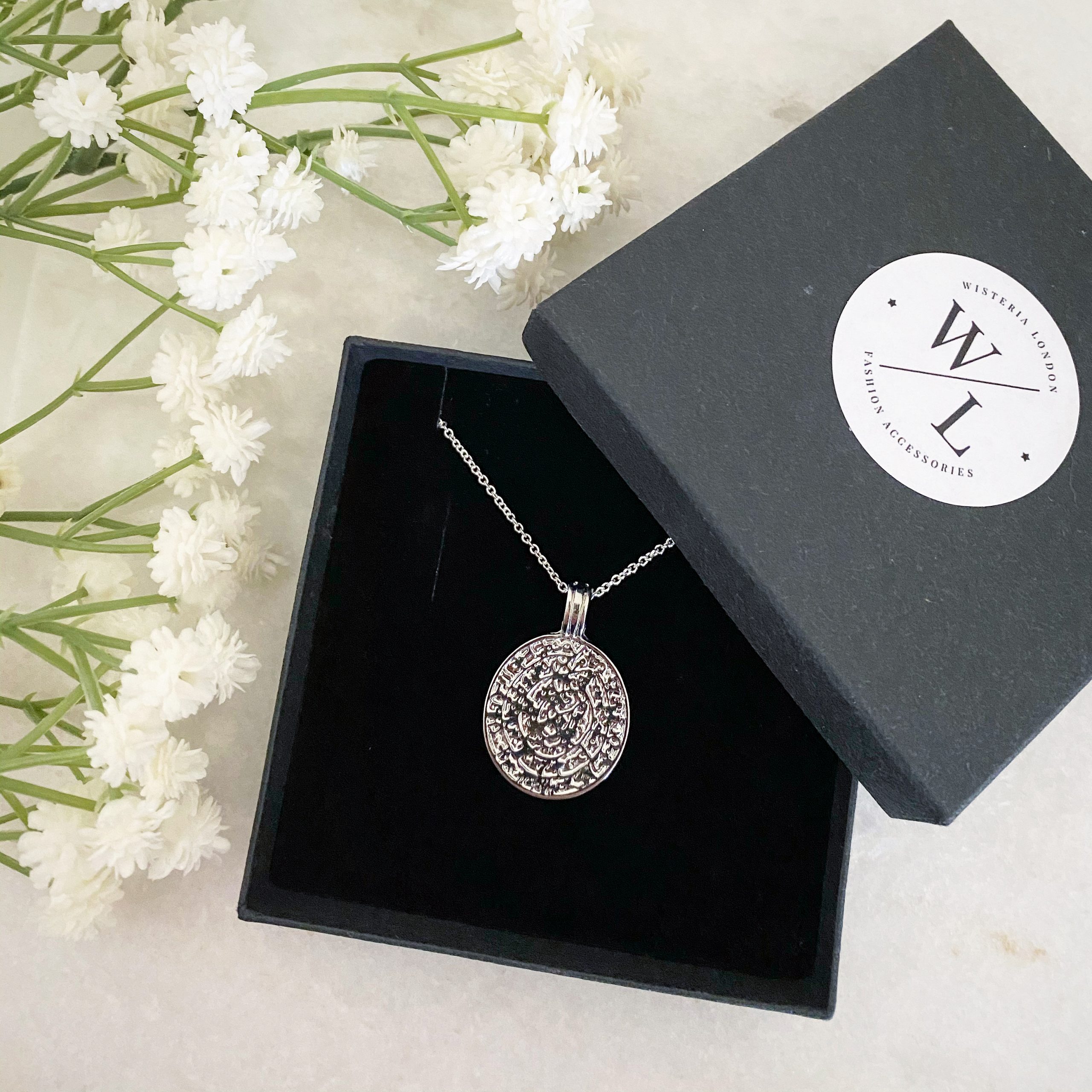 The classic coin reinvented. Taking inspiration from the classic beauty of the ancient era our wonderfully detailed Anthea Silver Coin Necklace is an on-trend staple for the up and coming seasons. This must-have coin is the perfect finishing touch to your necklace layers!