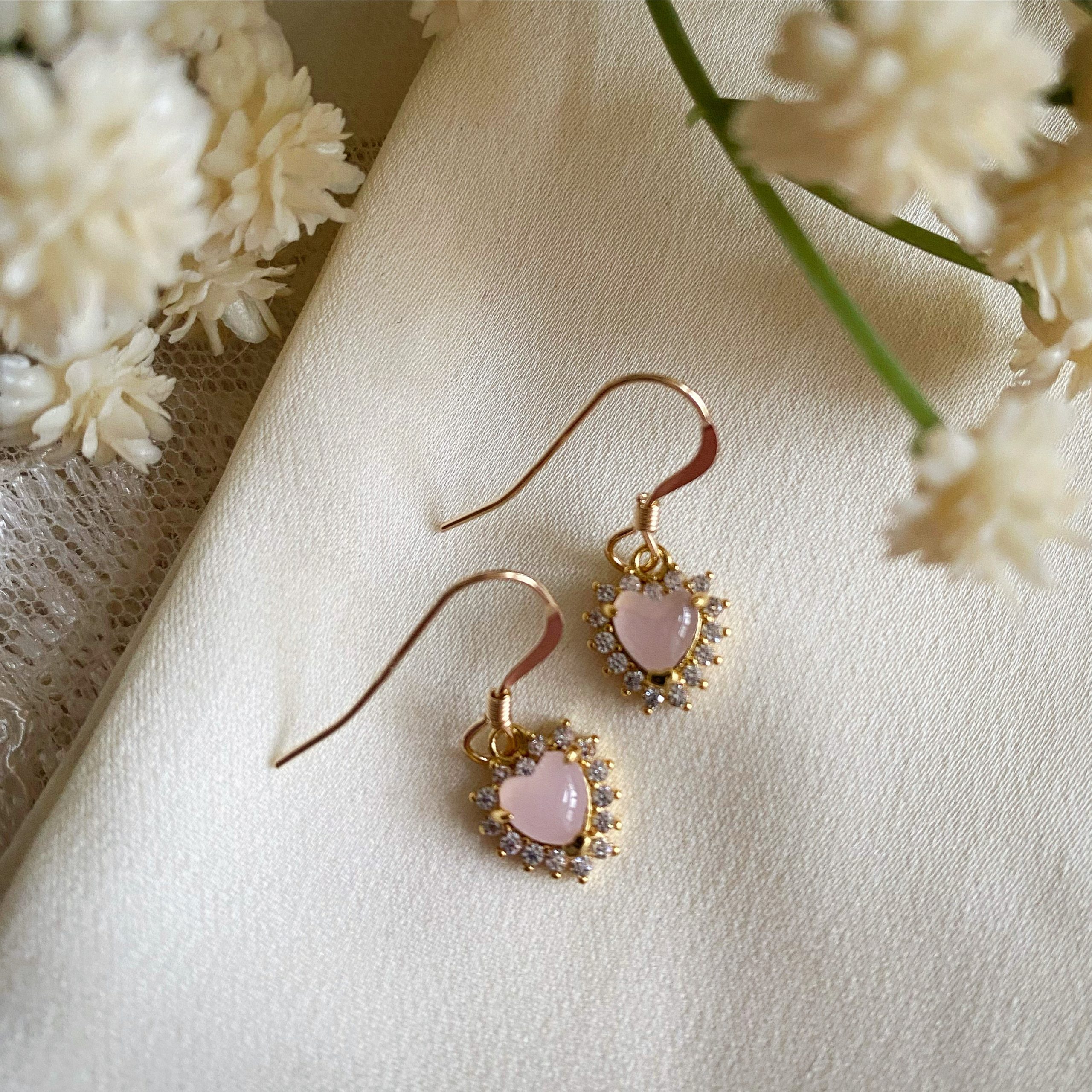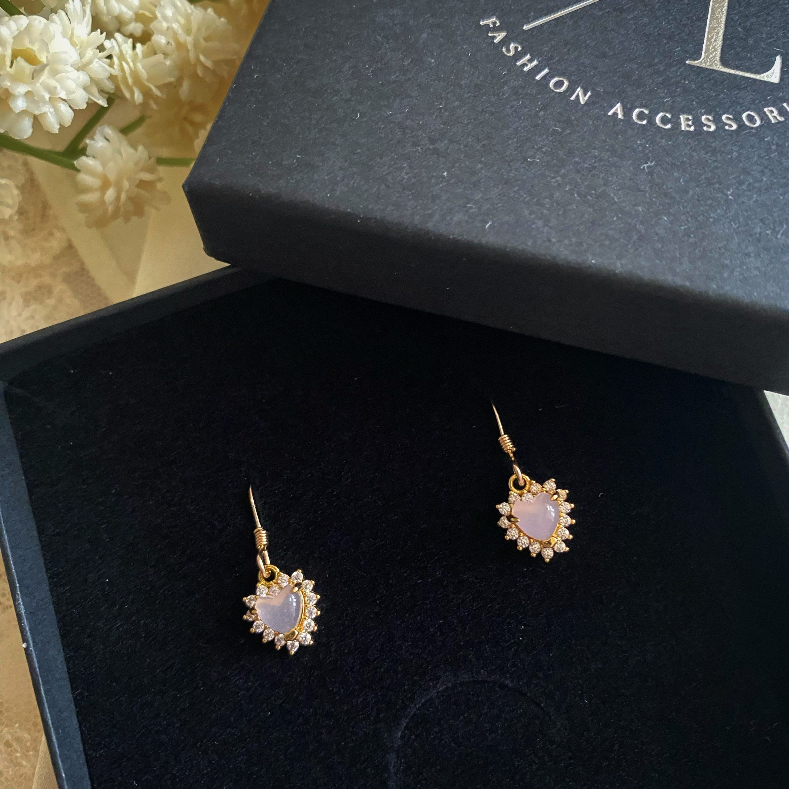 Fall in love with our Esme Dainty Pink Heart CZ Earrings. The universal symbol of love, our tiny gold heart earrings make the perfect gift for a loved one or self love treat and will add the perfect pop of sparkle to your jewellery collection.
