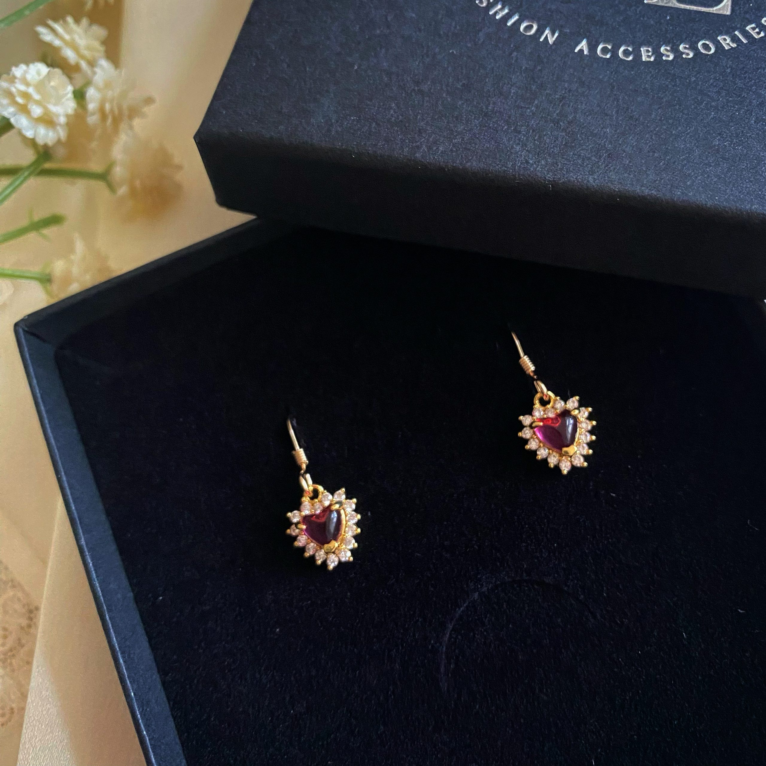 Fall in love with our Esme Dainty Red CZ Heart Earrings. The universal symbol of love, our tiny gold heart earrings make the perfect gift for a loved one or self love treat and will add the perfect pop of sparkle to your jewellery collection.