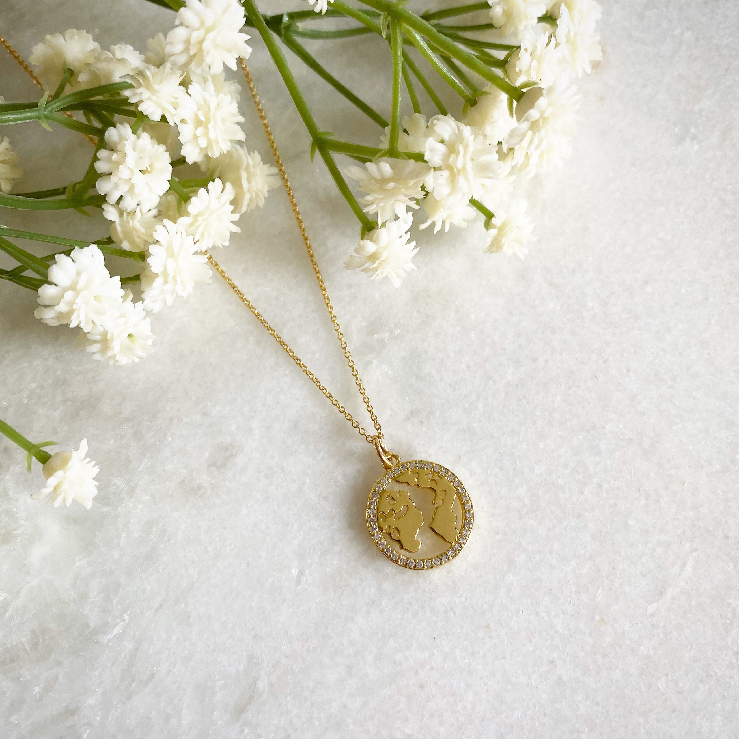Our Gold World Map CZ Necklace is perfect for gifting to a friend or family member to keep you together even when you’re countries apart! The perfect gift for the jetsetters filled with wanderlust and see the world as their oyster!