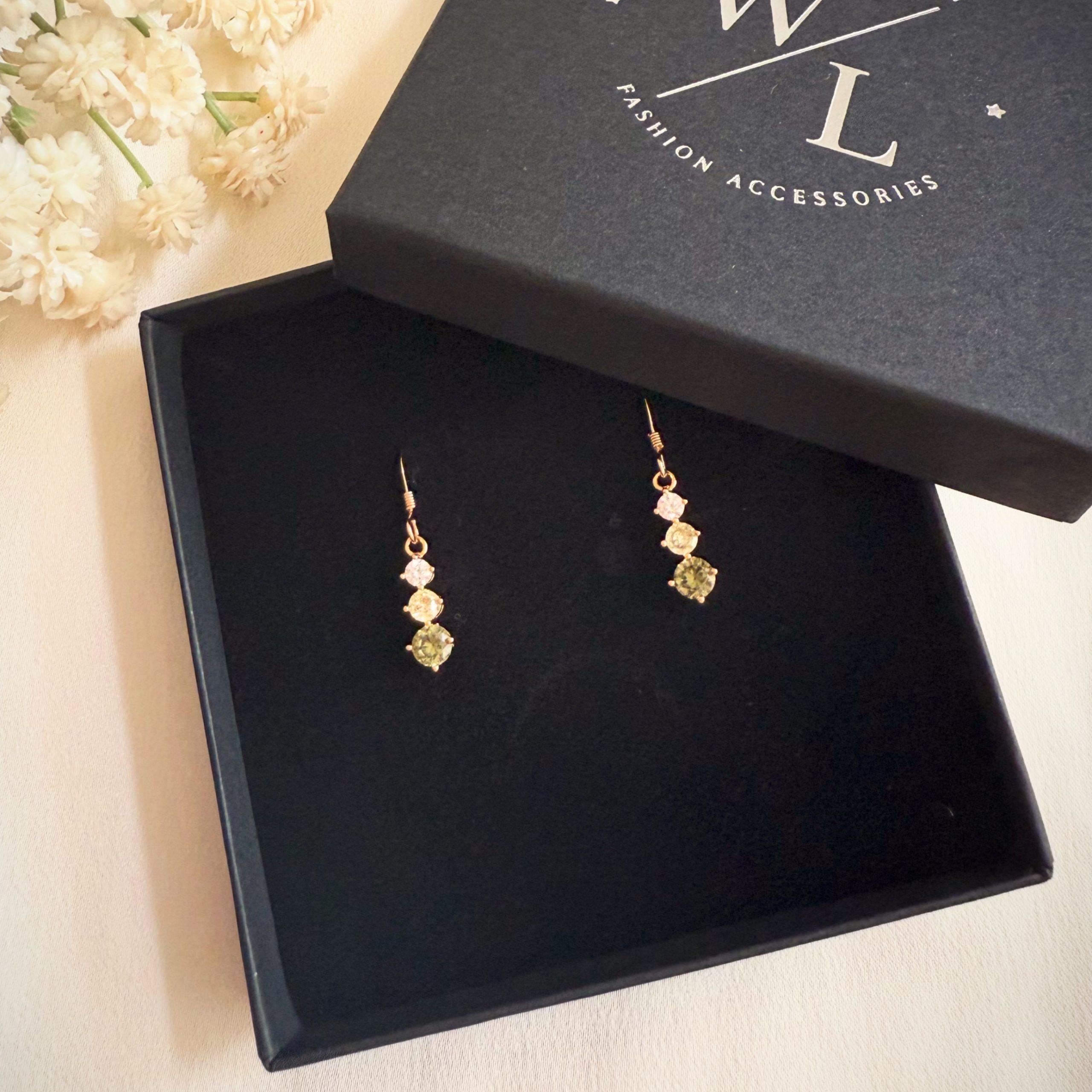 Elevate your everyday style with our Green CZ Ombre Gold Stud Earrings. Each stud features a subtle gradient of green CZ stones, transitioning from a soft light green to a deep, vibrant green, creating a bold and eye-catching effect.