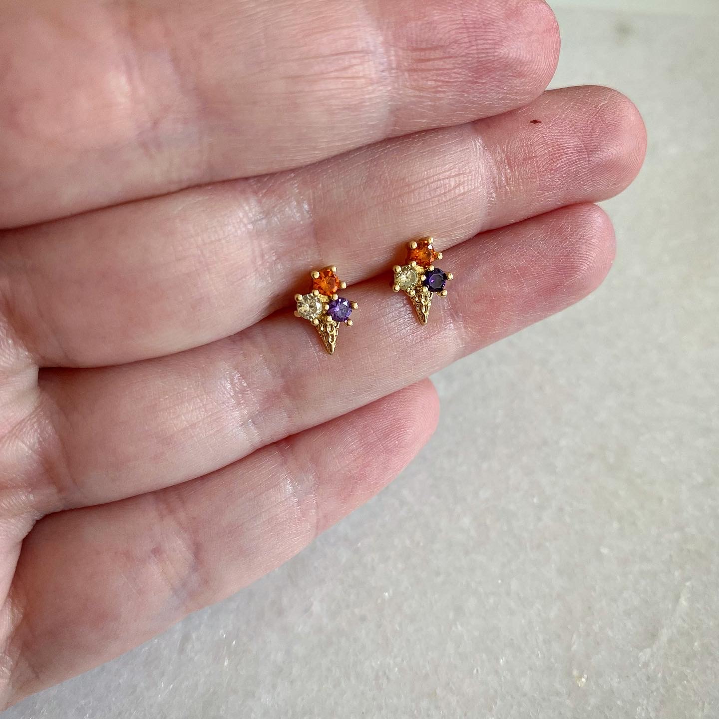 Add a scoop of style to your outfits with our colourful dainty Ice Cream Cone Stud Earrings. These pretty dainty earrings are sure to be seen with their sparkling CZ stones, the perfect compliment to your ear stack this spring/summer! A sweet gift for a loved one or maybe just a sneaky treat to yourself and one you definitely won’t feel guilty for!!