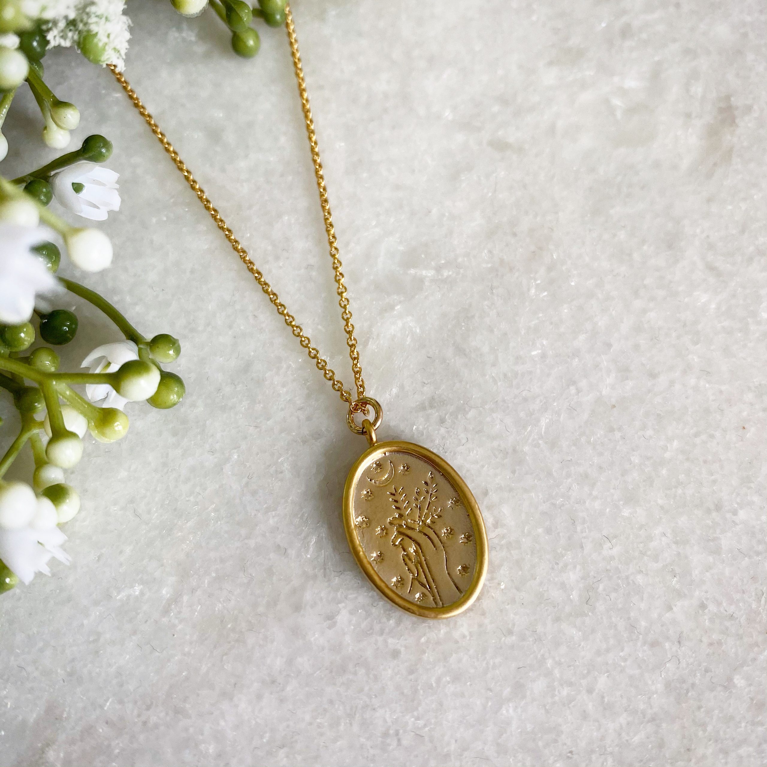 - Chain Length: Available on a 16″, 18″ or 20″ gold filled fine trace chain