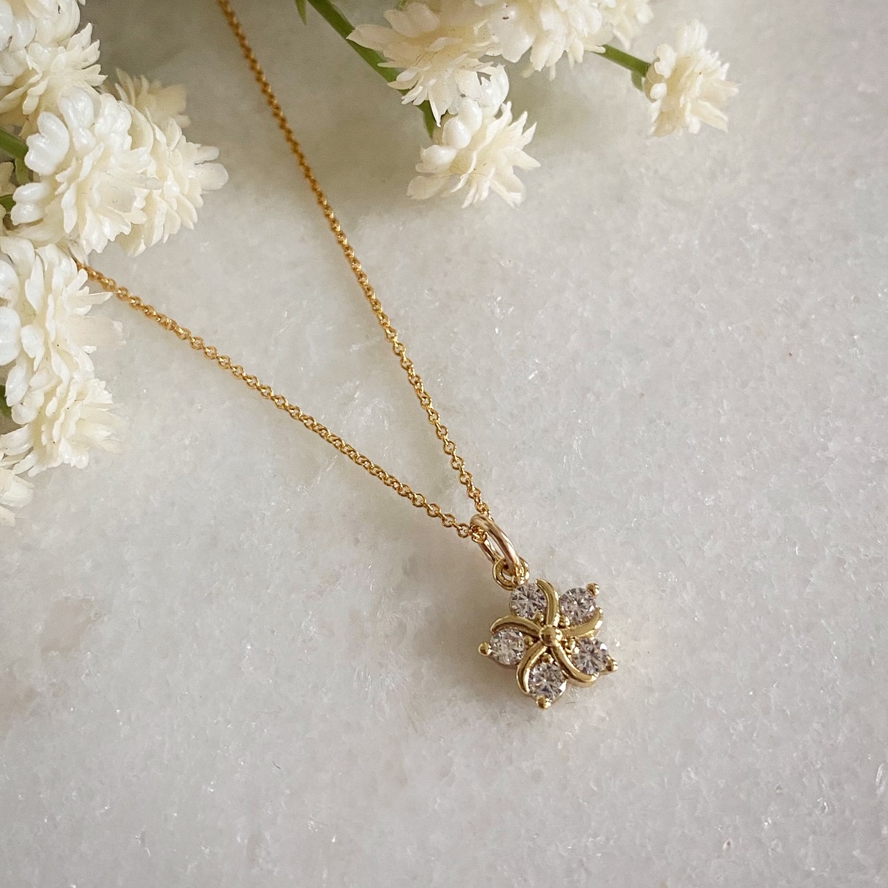 Add a dash of sparkle to your look with our pretty Lila Clear Flower Necklace. This beautiful flower necklace is the perfect piece to take you through the season no matter what the weather!