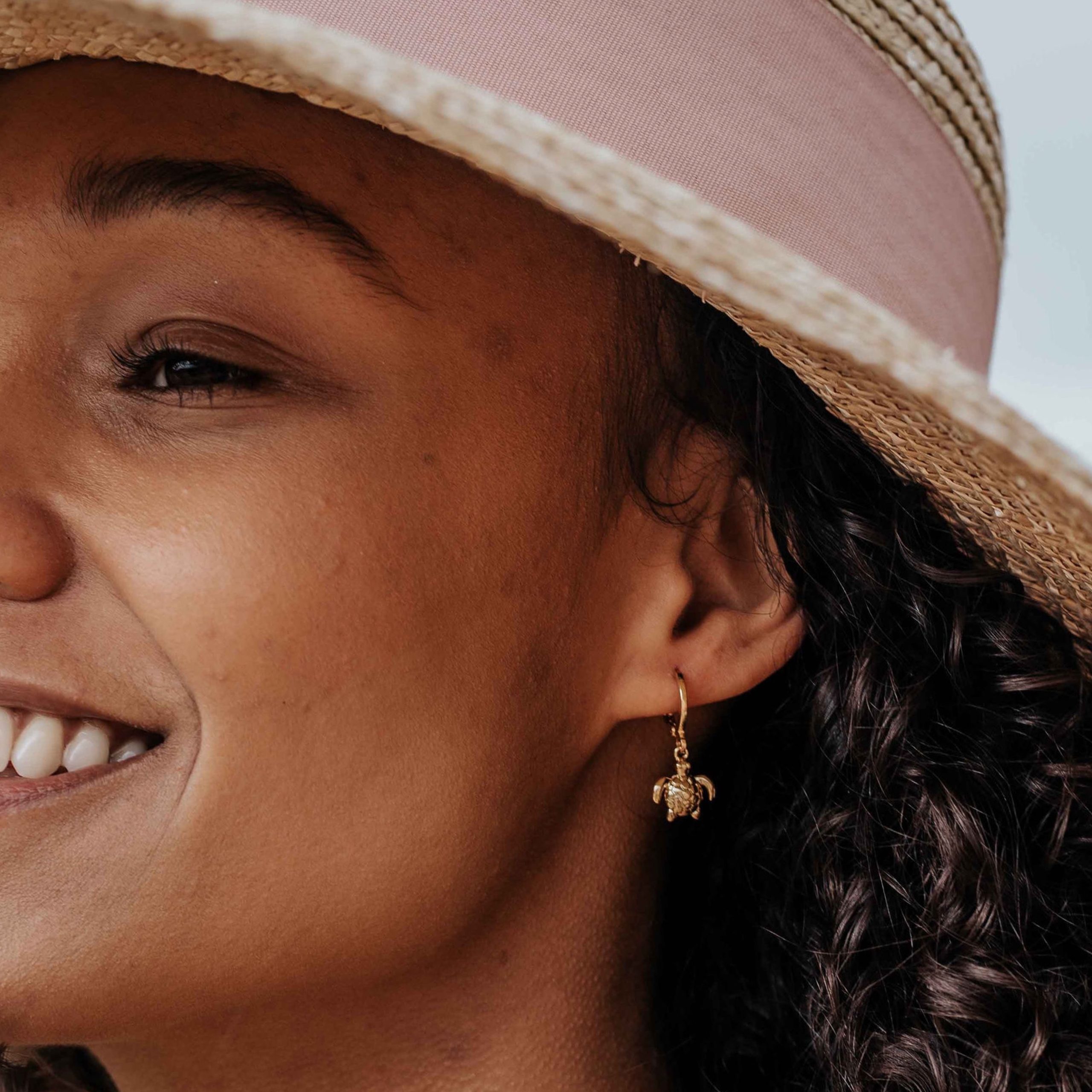 Create your own dreamy escape by introducing our sweet Moana Sea Turtle Huggie Hoop Earrings into your jewellery collection. Our small dainty gold sea turtle earrings represent stability, patience and protection. Perfect for wearing as a reminder to take things slow! Exquisitely detailed these pair of earrings make a great gift for nature lovers or anyone who appreciates the beauty of ocean life.