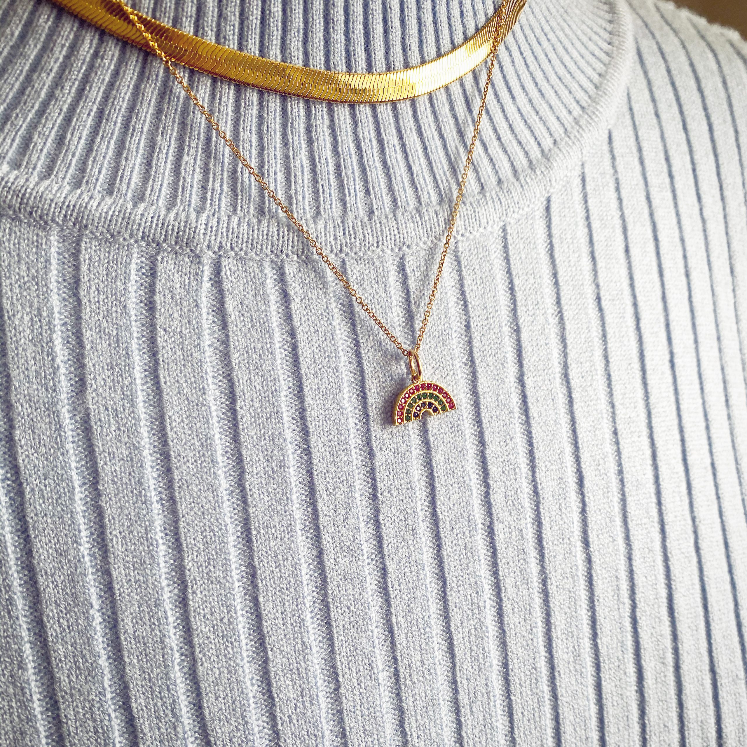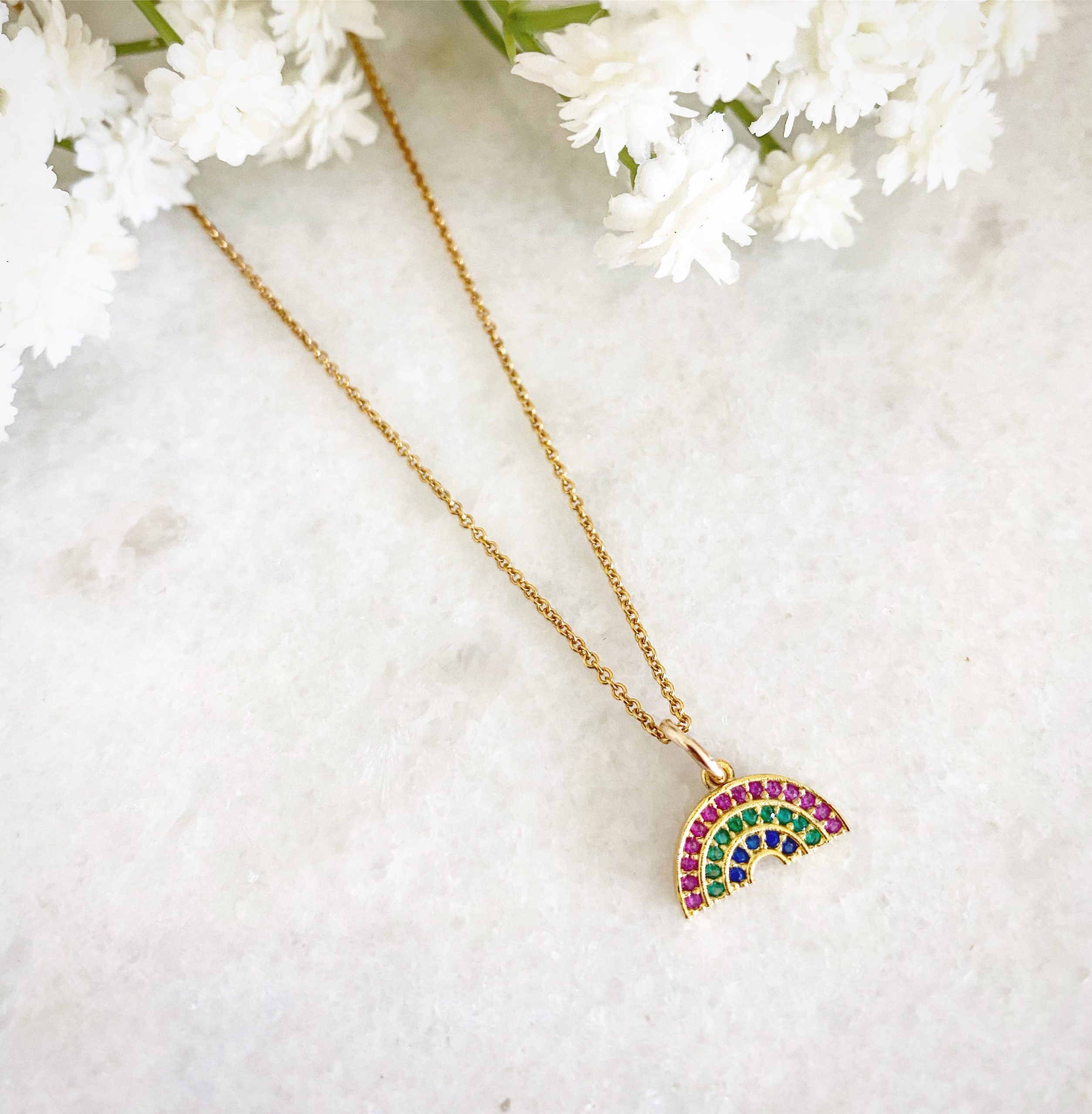 Brighten up your outfits even on a cloudy day with our beautiful Rainbow Necklace. Radiating happy vibes and vibrant sparkles this Wisteria London necklace is a pretty piece for everyday wear. A wonderful gift or self indulgent treat.