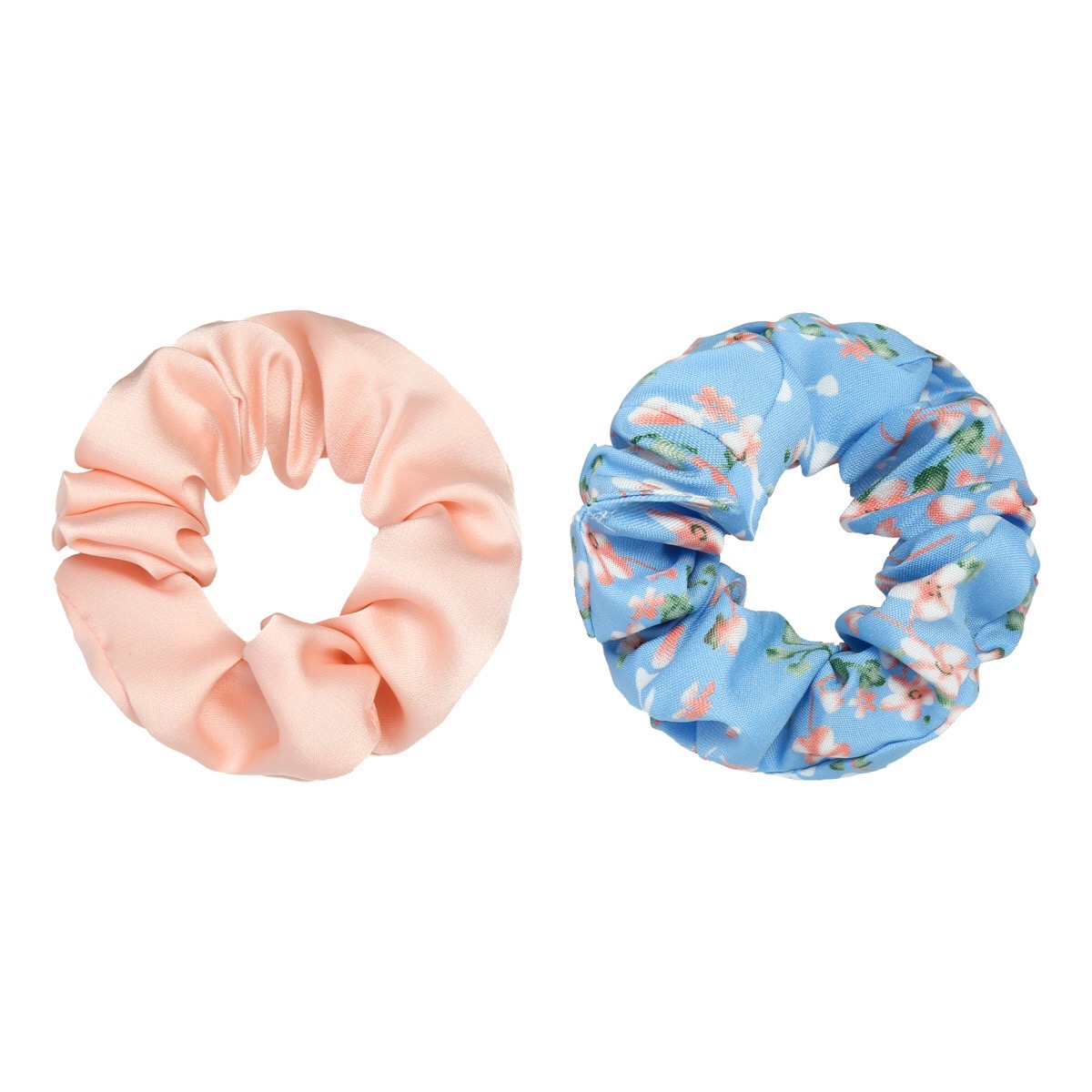 Your new summer hair essentials have arrived, the Rosa set of 2 floral hair scrunchies blue. Designed with a vibrant floral print and contrasting plain print their smooth satin fabric not only looks lavish it’s also gentle on your hair. The perfect accessory to effortlessly add a slight pop of colour to your look. Slip over a low pony to add a girly touch.