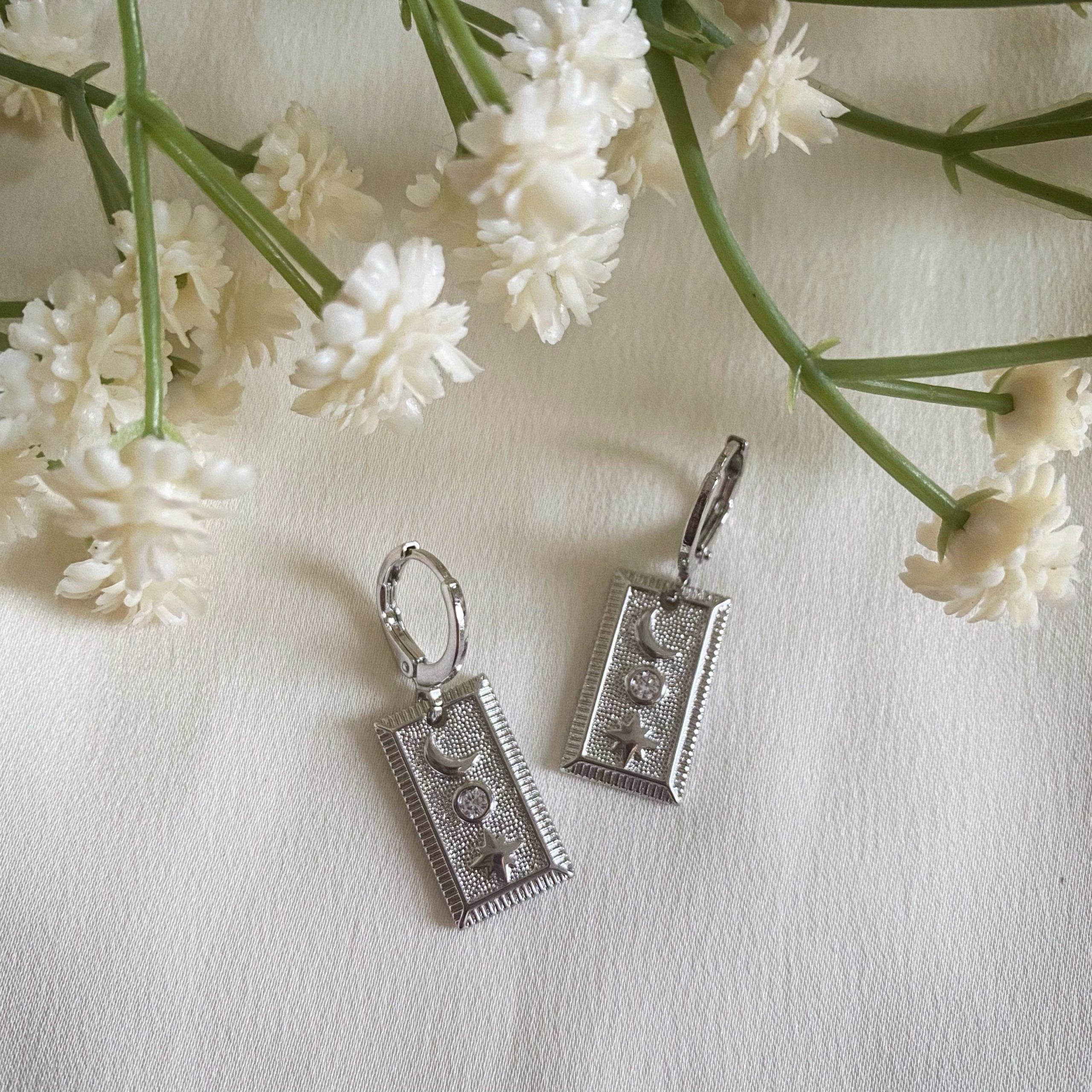 Shine bright with our gorgeous Selene Silver Moon and Star Huggie Hoops. The star inspires us to be the light in the dark bringing hope and guidance while the moon is a symbol of protection. The perfect on-trend accessory to transition your outfit from day to night.