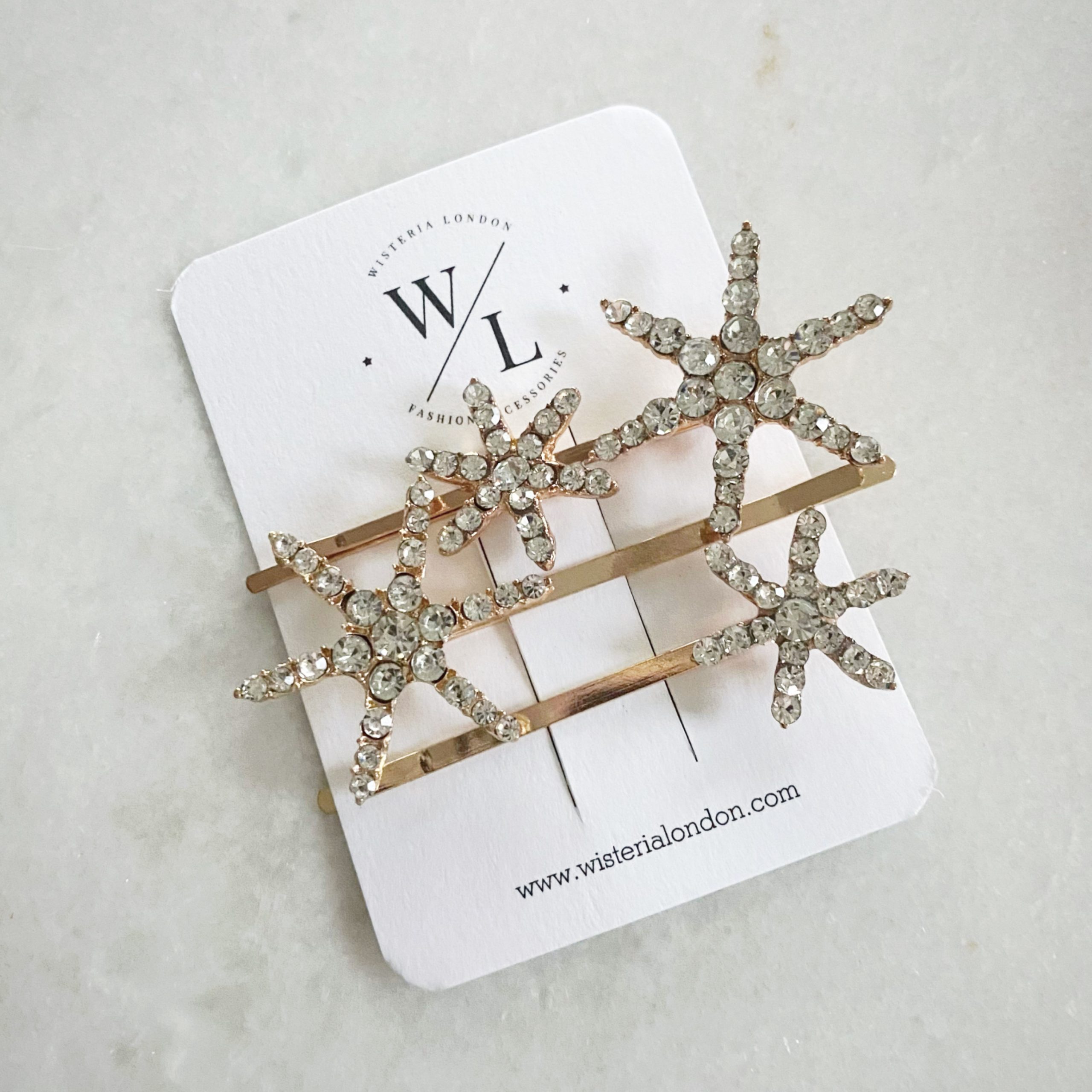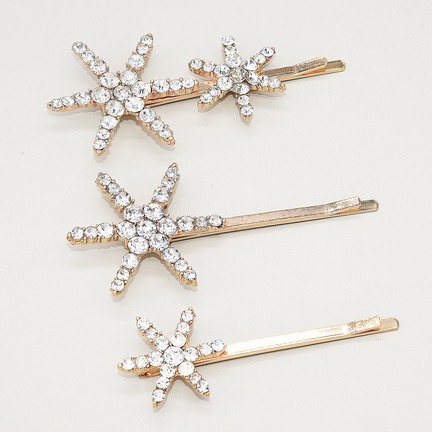 Add a starry touch to your hairdo with our Starlight Gold Set of 3 Diamante Hair Slides. Adorned with glittering stars, combining dazzling diamantes and high shine finishes. Destined to bring a playful twist to your accessories edit.