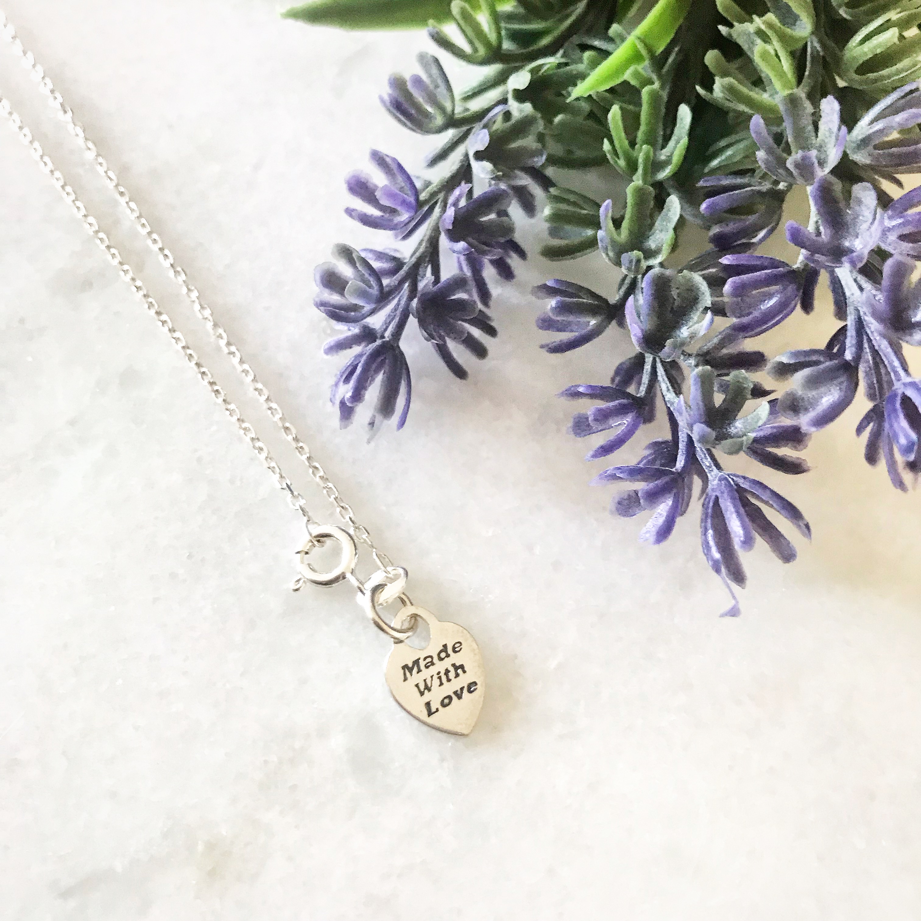 - 12mm Sterling Silver ‘Made with Love’ tag