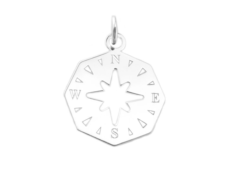 - Sterling Silver 8 sided cut out compass pendant