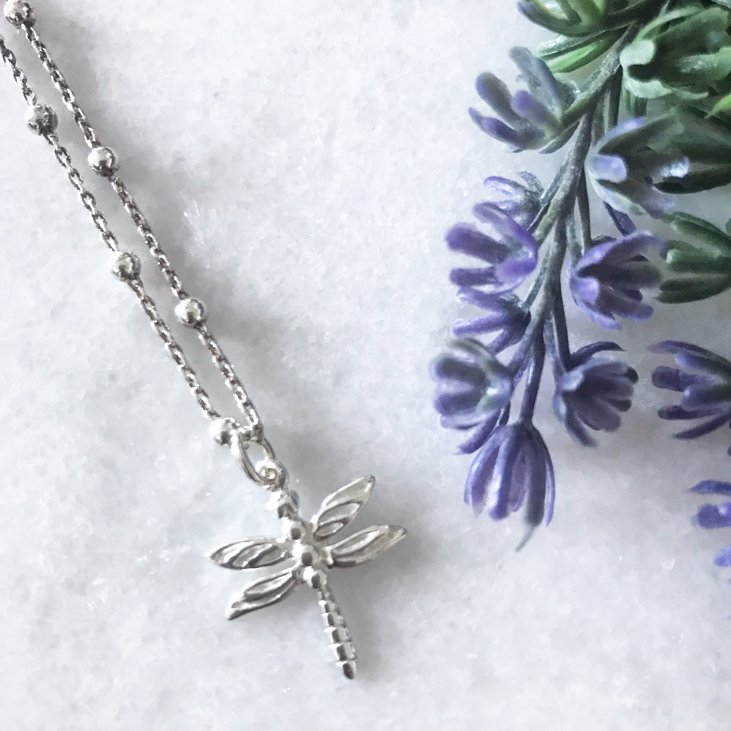 Sterling Silver Dragonfly Necklace on Bobble Chain